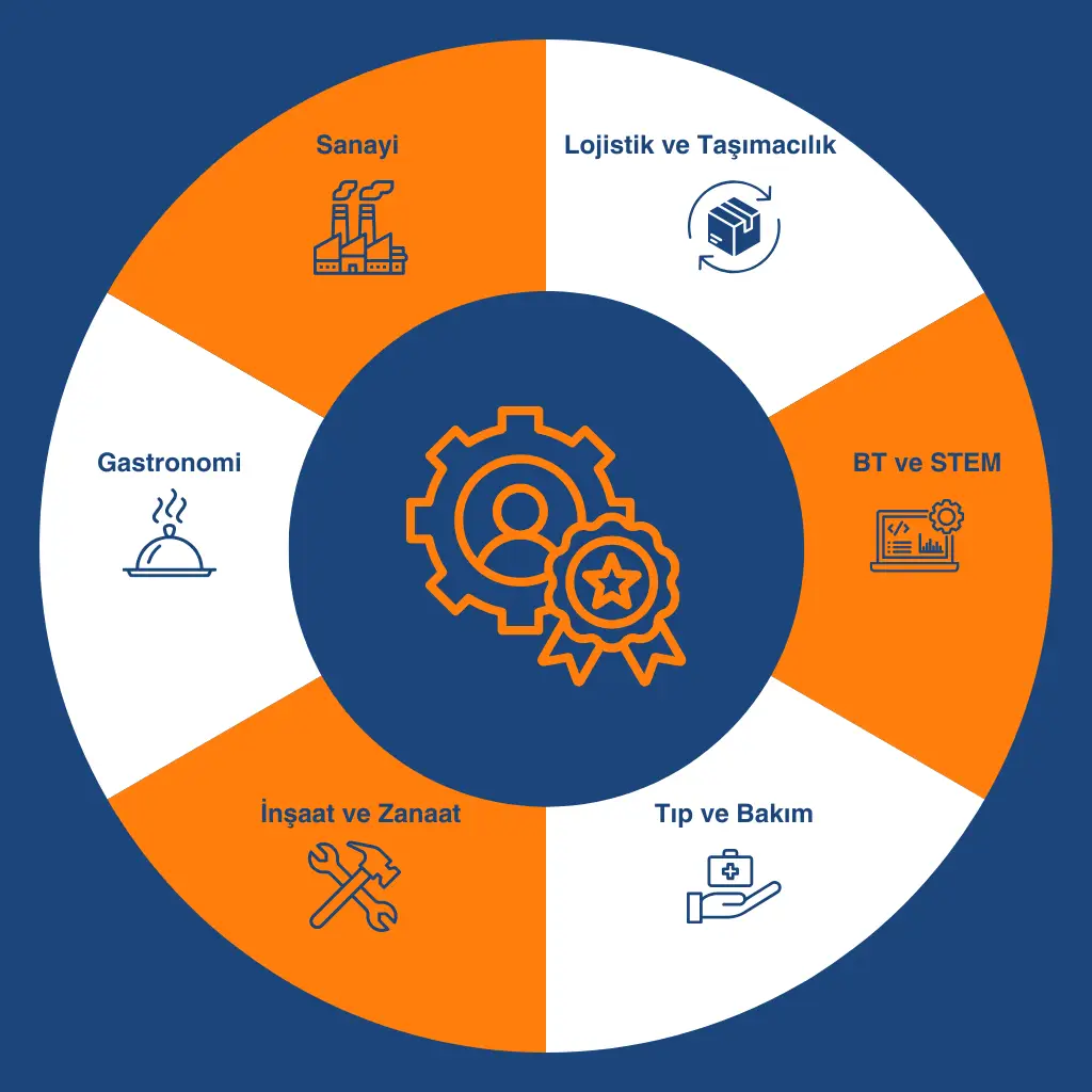 Kapsamlı sektör uzmanlığımızla, BT ve STEM, tıp ve sağlık, inşaat ve zanaat, gastronomi, lojistik ve sanayi alanlarında şirketlere, kurumlara ve işletmelere personel temininde destek oluyoruz.